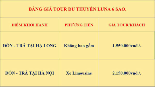 VỊNH HẠ LONG 1 NGÀY – DU THUYỀN LUNA CRUISE – 6 SAO.