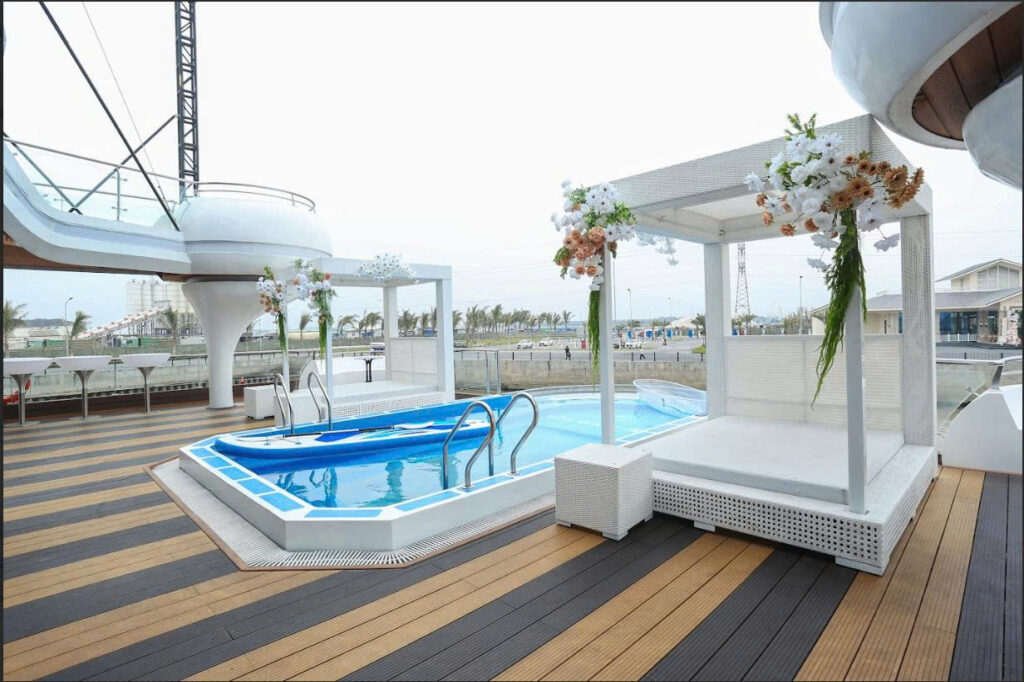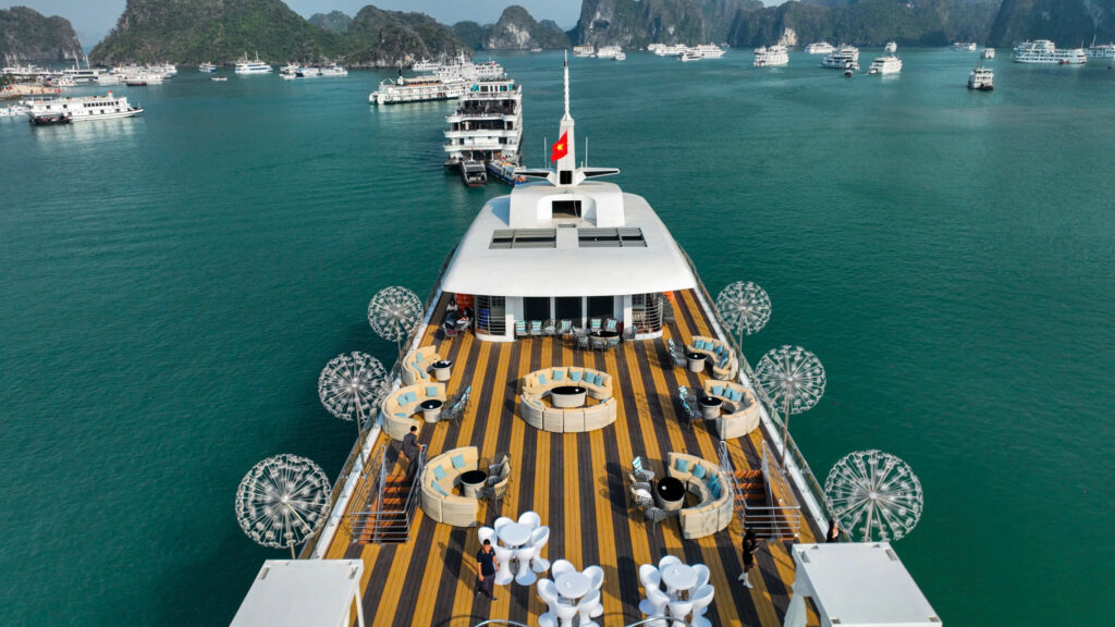 Luna HaLong Cruise 6 Sao có kích thước rất lớn, có sức chứa tối đa 550 khách là một trong những du thuyền sang trọng bậc nhất Vịnh Hạ Long năm 2024. Du thuyền Hạ Long sở hữu trong mình tiện nghi sang trọng, nhà hàng cao cấp, Sundeck 360 độ bao trọn cảnh vịnh Hạ Long, bể bơi lớn ngoài trời đáy kính đem đến trải nghiệm vô cùng thú vị. Quầy bar, spa, phòng nghỉ đều rất sang trọng và đẳng cấp.