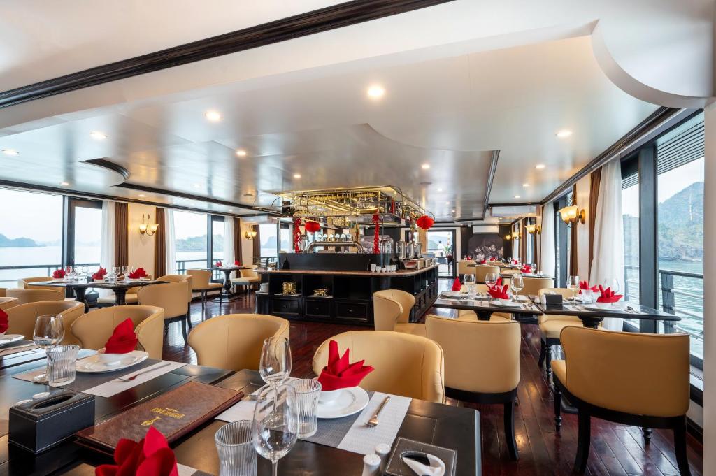 13:00: Quý khách dùng bữa trưa và cùng DragonBay Premium Cruises bắt đầu một hải trình đặc biệt và độc nhất – hành trình đi xuyên hai vùng vịnh Hạ Long – Lan Hạ.