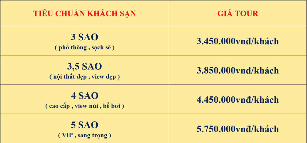 - Nhóm từ 5 người trở lên: giảm ngay từ 50.000 – 100.000đ/người.
