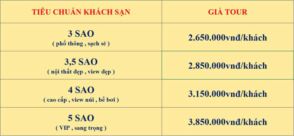 - Nhóm từ 5 người trở lên: giảm ngay từ 50.000 – 100.000đ/người.