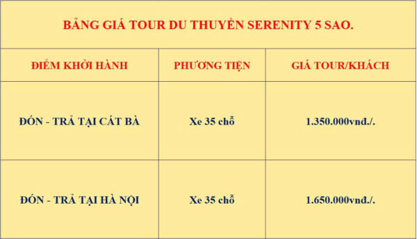 VỊNH HẠ LONG 1 NGÀY – DU THUYỀN SERENITY – 5 SAO.