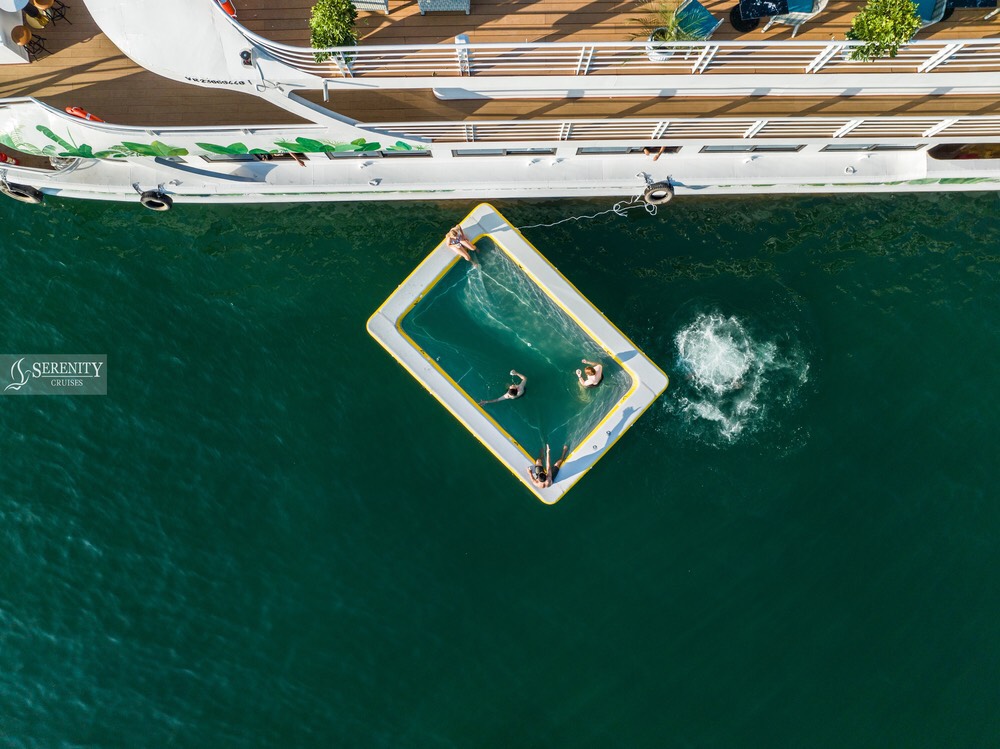 ✅Tắm bể bơi phao khí siêu to, siêu khổng lồ Serenity Pool được trang bị bởi Serenity Cruises